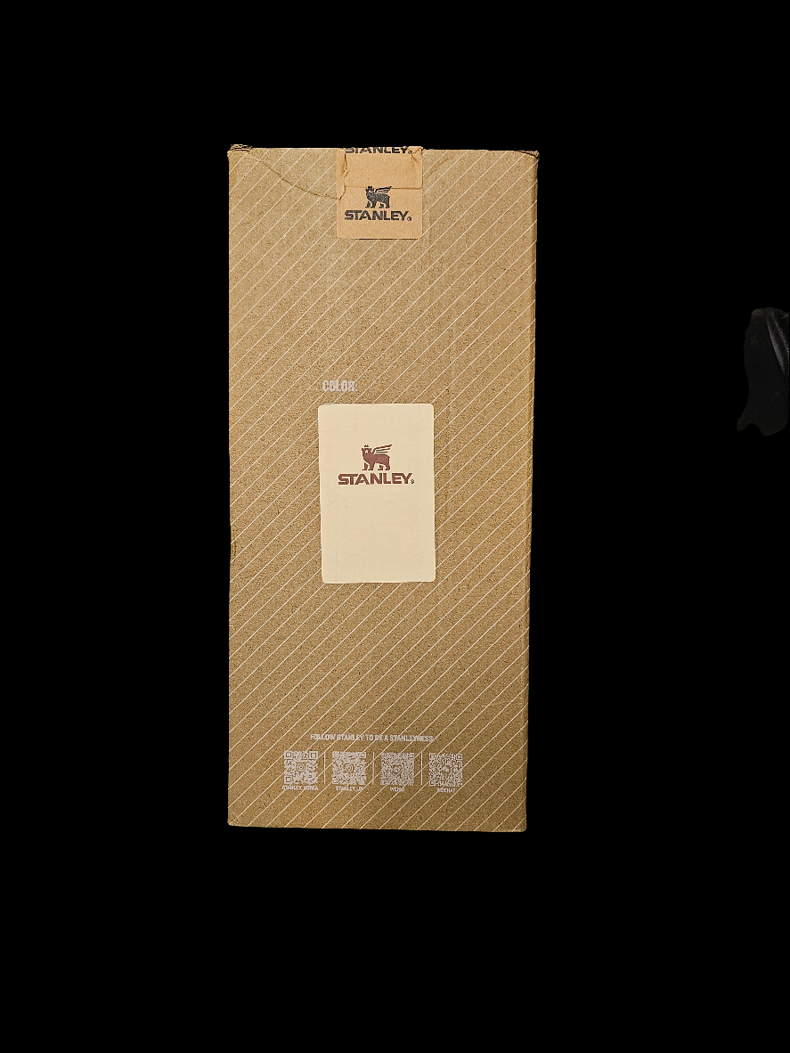 You're looking at the iconic Stanley branding, proudly displayed at the top of a sturdy, eco-conscious kraft-colored cardboard box. The packaging itself speaks to Stanley's heritage of durability and quality.