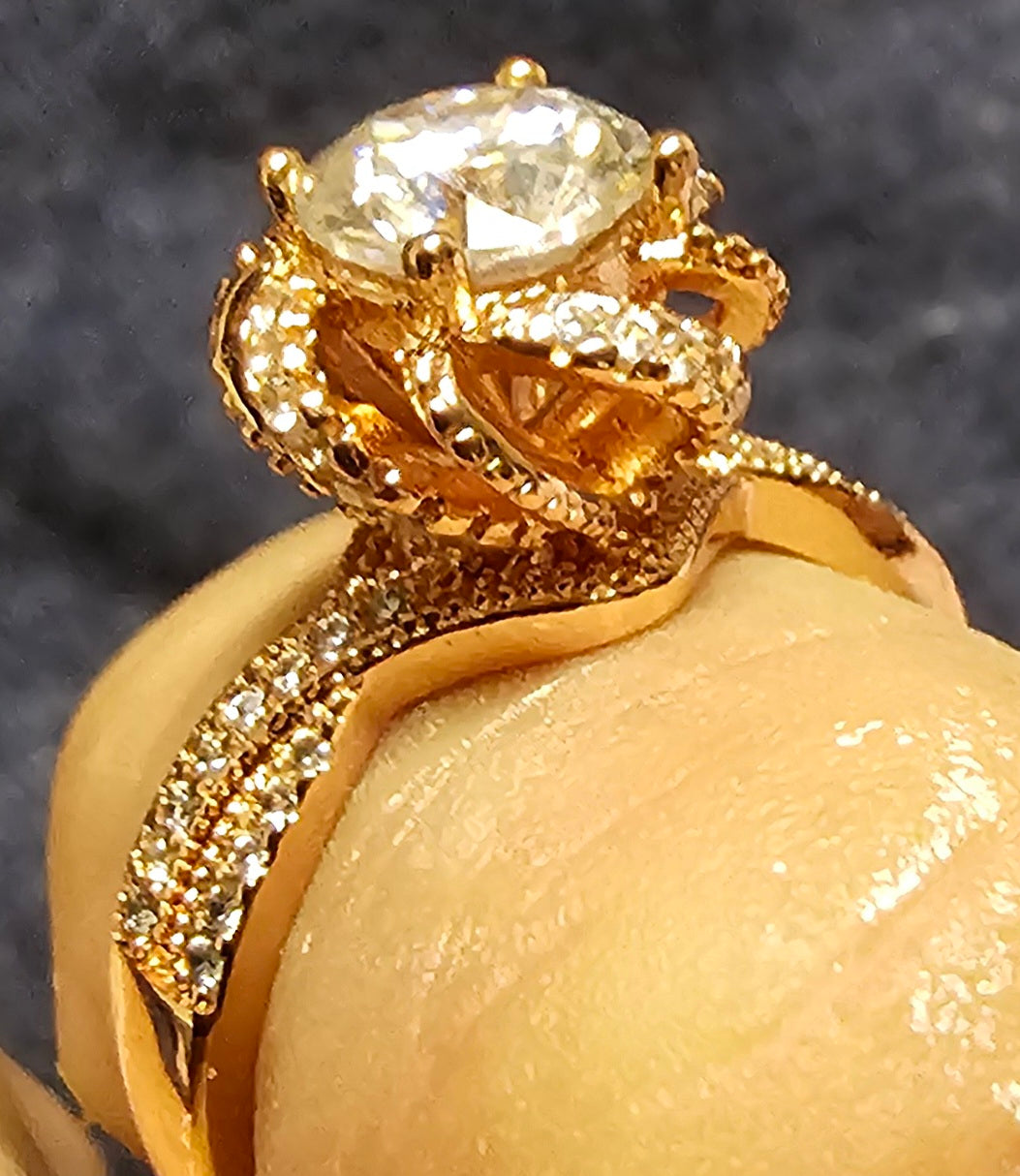 - Dazzling Center Stone: A large, clear, and brilliantly faceted stone catches the light, making a bold and luxurious statement.